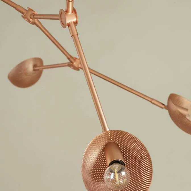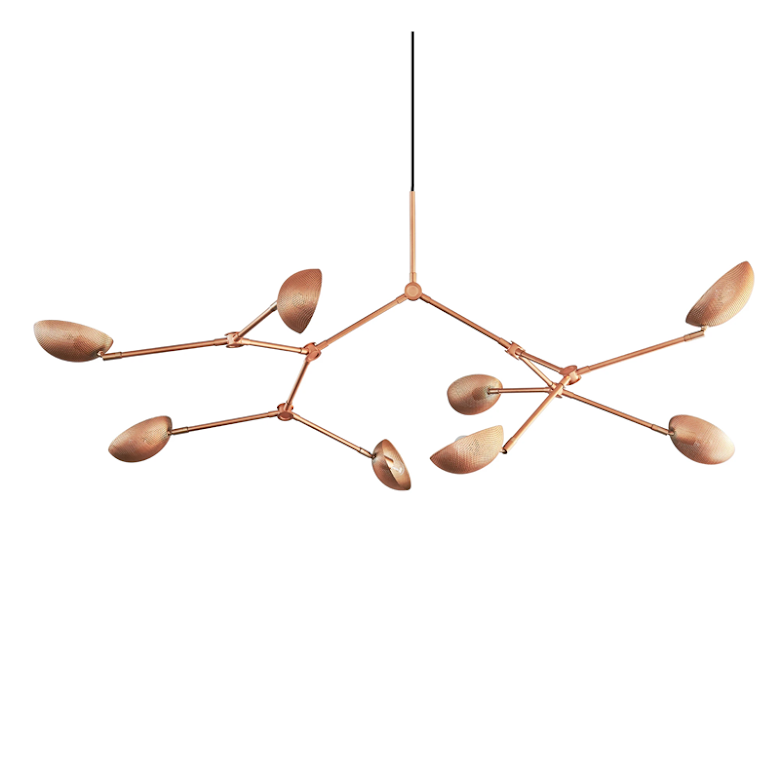 Drop Chandelier perforated, rose metal, frĂ„n 101 Copenhagen Ă€r en magnifik takkrona med 8 justerbara ljuskĂ€llor. De perforerade skĂ€rmarna ger ett mjukt och behagligt ljus. Den Ă€r formgiven av Kristian Sofus Hansen och Tommy Hyldahl och ingĂ„r i en hel serie vacka taklampor.Â