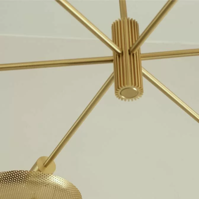 Papillion Perforated Ă€r designad av Köpenhamnsbaserade designerna Kristian Sofus Hansen och Tommy Hyldahl, som har hittat sin inspiration av Mathieu MatĂ©gots sĂ€tt att arbeta med plĂ„t pĂ„ ett mjukt och organisk vis. De perforerade lampskĂ€rmarna lyser upp taket medan ett indirekt ljus filtrerar genom de perforerade mĂ€ssingsarken och skapar en varm och inbjudande atmosfĂ€r. Papillion, som betyder fjĂ€ril pĂ„ franska, illustreras poetiskt av de svĂ€vande lampskĂ€rmarna.Â