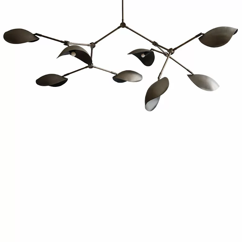 Stingray chandelier frĂ„n 101 Copenhagen Ă€r en skulptural takkrona med 8 justerbara ljuskĂ€llor. Lampan har en modernistisk 50-talsdesign med mjukt böjda lampskĂ€rmar inspirerad av stingrockan. Liksom den populĂ€ra Drop Chandelier har lampan flexibla och funktionellt justerbara armar som gör det möjligt att forma lampan i flera olika vinklar för ett varierat uttryck. Lampan har en konstruktion och skĂ€rmar i borstad bronsfinish.Â