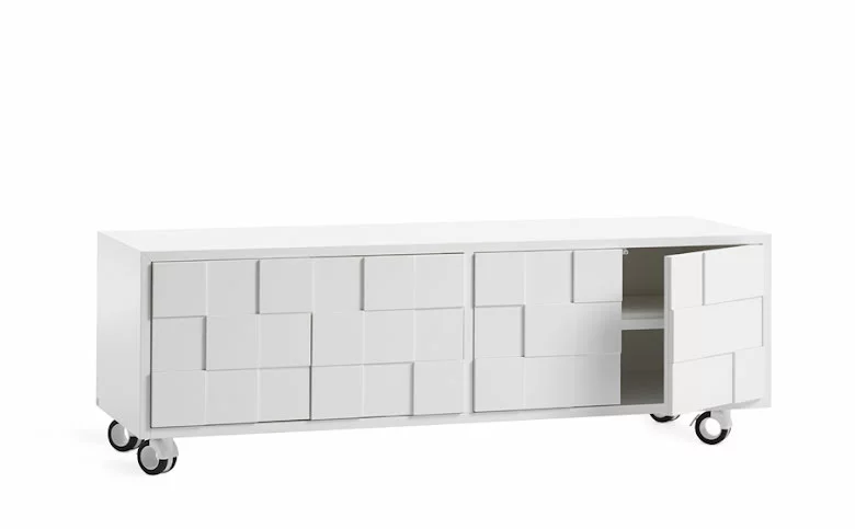 Det vita skåpet är en modern möbel med ett klassiskt uttryck. De två dörrarna öppnas med sk ”pushfunktion”. Bakom dörrarna finns två justerbara hyllplan samt kabelhål.