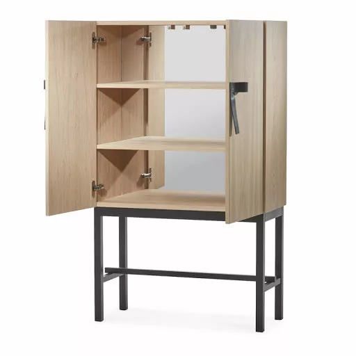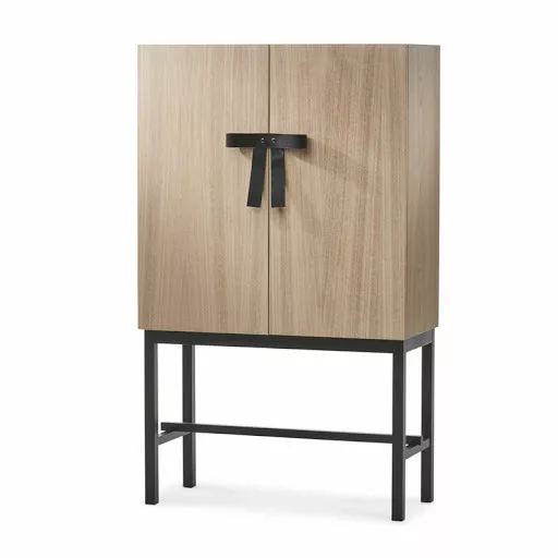 The bow cabinet Ă€r ett skĂ„p designat av Sara Larsson frĂ„n A2 designers. SkĂ„pet Ă€r stilsĂ€kert och minimalistiskt med ett fokus pĂ„ den vackra rosetten i svart lĂ€der, som pryder skĂ„pets mitt. SkĂ„pet bjuder pĂ„ en överraskning nĂ€r dörrarna öppnas, för pĂ„ bakre vĂ€ggen finns en spegelvĂ€gg som effektfullt skapar rymd och framhĂ€ver favoritsakerna du placerat pĂ„ hyllorna.Â