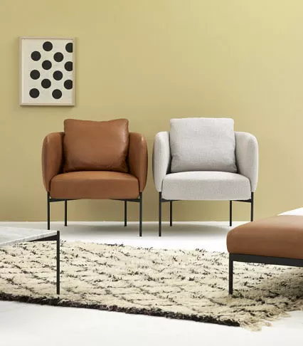 Bonnet är en liten fåtölj med kurviga former ifrån Adea. Dess runda och mjuka former gör den till en idealisk stol för både komfort och utrymme. Den gör sig lika bra själv som med flera och fungerar lika bra i hemmamiljö som i offentliga miljöer. Ryggkuddens mjuka utseende ger den i övrigt fasta fåtöljen en elegant touch. Tillsammans med de smala tubformade benen får Bonnet en fantastiskt vacker kontrast, som verkligen drar till sig uppmärksamhet.