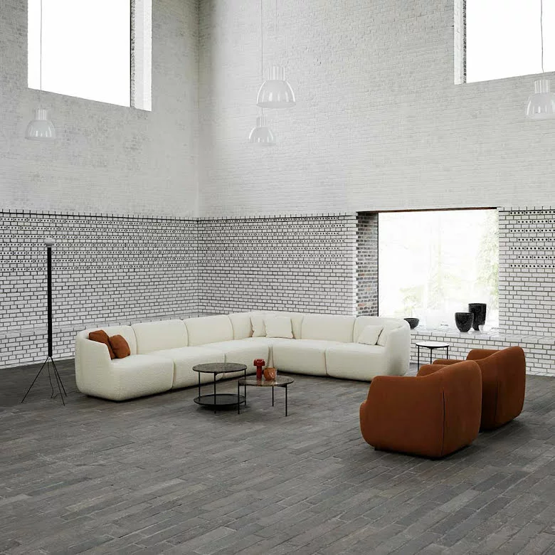 Como 3-sitssoffa Àr tillverkad av finska varumÀrket Adea och ingÄr i ett modulÀrt soffsystem designat av Mattias Stenberg.