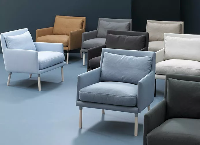 Den nätta och bekväma fåtöljen Lin kommer från finska Adea. Adea har sedan 1994 tillverkat moderna stoppmöbler som kombinerar komfort och elegans. Lin finns att beställa i flera olika härliga tyger och också i kombination läder/textil eller helt i läder. Textil- och läderprover finns på Plan ett på Birger Jarlsgatan. I nätbutiken kan du beställa Lin i tyget Diamonds.