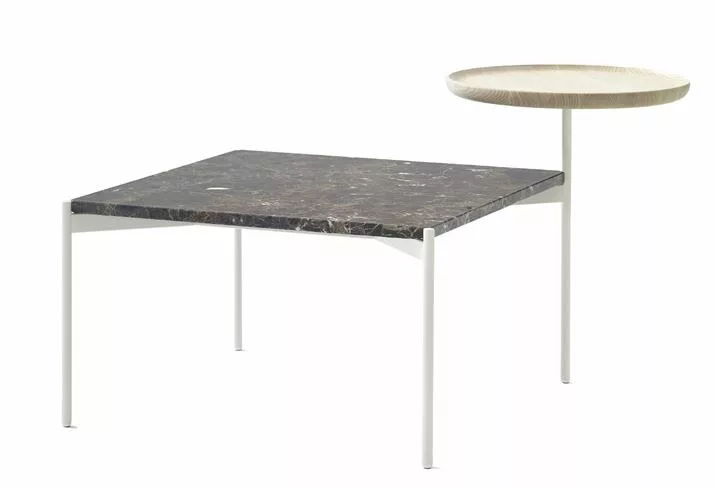 Material: Skiva i Vit Carrara marmor, Svart Marquinia marmor och Brun Emperador marmor och benstativ i pulverlackat stÄl i vit eller svart. Den lilla runda brickan Àr ett extra val och Àr i ask eller wenge.