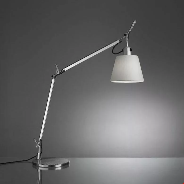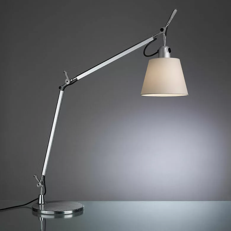 Tolomeo Basculante Ă€r en elegant, enkel och funktionell bordslampa med stativ i polerad aluminium och skĂ€rm i ivory pergament. Lampan Ă€r konstruerad sĂ„ att skĂ€rmen kan hĂ€nga vertikalt oavsett vinkeln pĂ„ stativet. Tolomeo bestĂ„r av en hel serie bord, vĂ€gg, tak och golvlampor.Â
