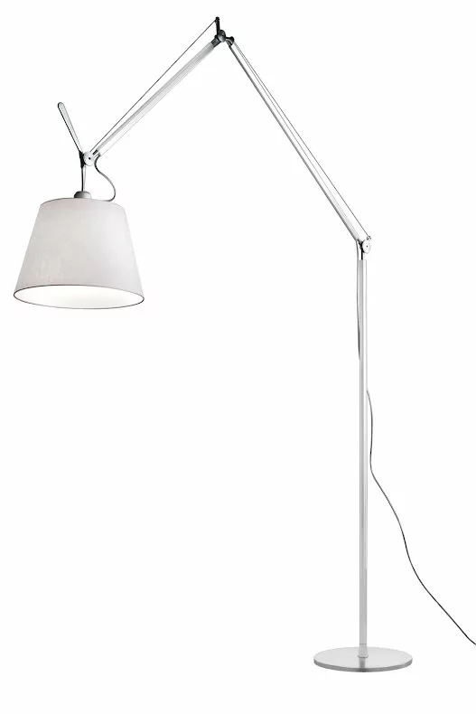 En stor och generös golvlampa med dimmer frÄn Artemides Tolomeo-serie. Denna lampa gÄr att bestÀlla i tvÄ olika utföranden med- Bas i aluminium med skÀrm i pergament alternativt i svartmÄlad aluminium och svart satinskÀrm