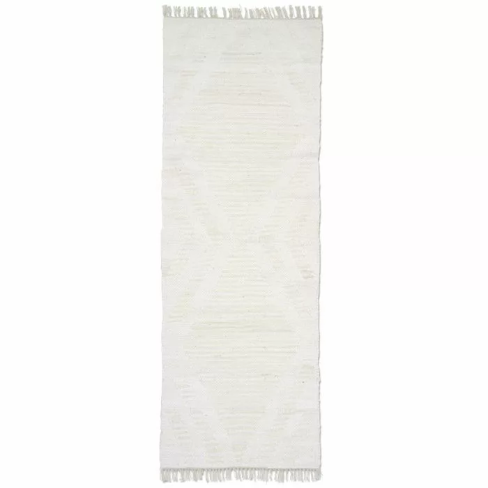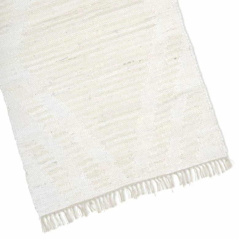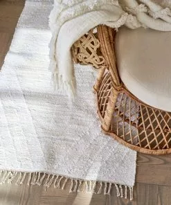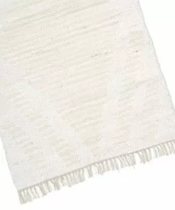 Slite White Ă€r en handvĂ€vd trasmatta i bomull med ett modernt mönster. Nyanserna gĂ„r i en blandning av kall och varm vit med frans i off-white, en kombination som tillsammans ger ett sobert och stilrent uttryck.Â
