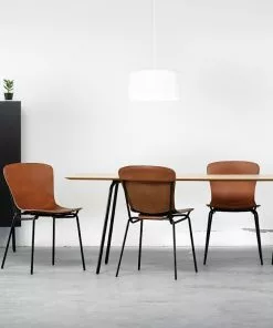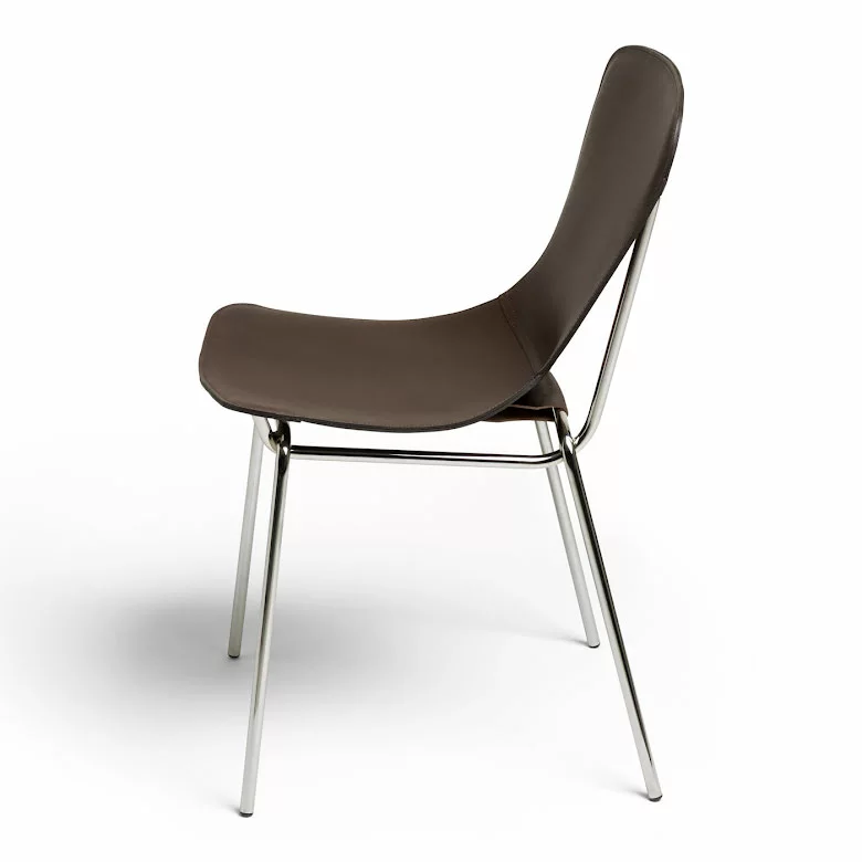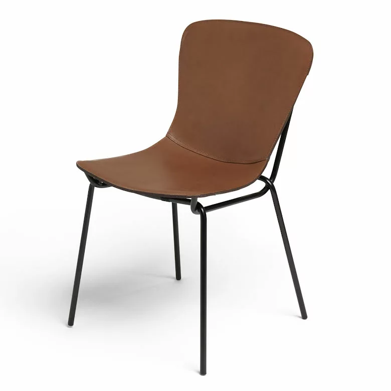 Hammock stol av Axel Bjurström för David Design, Àr inspirerad av den enkla plaststolen men gjord i lÀder som formas och rör sig efter din kropp och hur du sitter. Med tiden Äldras lÀdret och fÄr en vacker naturlig patina. Sitsen Àr formsydd och laminerad med en bomullsduk och under sitsen Àr den spÀnd med remmar, för maximal komfort.