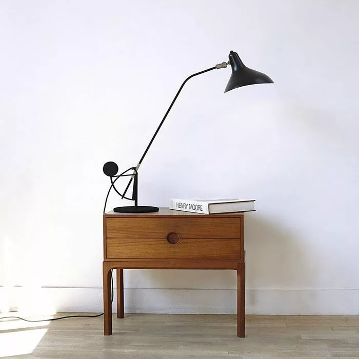 Belysningsserien Mantis skapades redan 1951 av formgivaren Bernard Schottlander och har genom sin unika design och funktion blivit en riktig designklassiker. Konstruktionen utgörs av motvikter och rörliga metallstänger vilket bland annat gör att lampan går att rotera i 360°