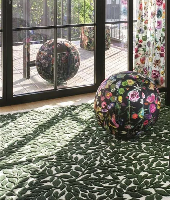 Med matta Bosquet Roseau av Christian Lacroix tar du in trĂ€dgĂ„rden i ditt hem. Det vackra botaniska mönstret Ă€r skapat med hjĂ€lp av varierande lugghöjder som accentuerar bladen. Den Ă€r handtuftad med en blandning av skuren lugg och ögglor. Designers Guild producerar mattan.Â