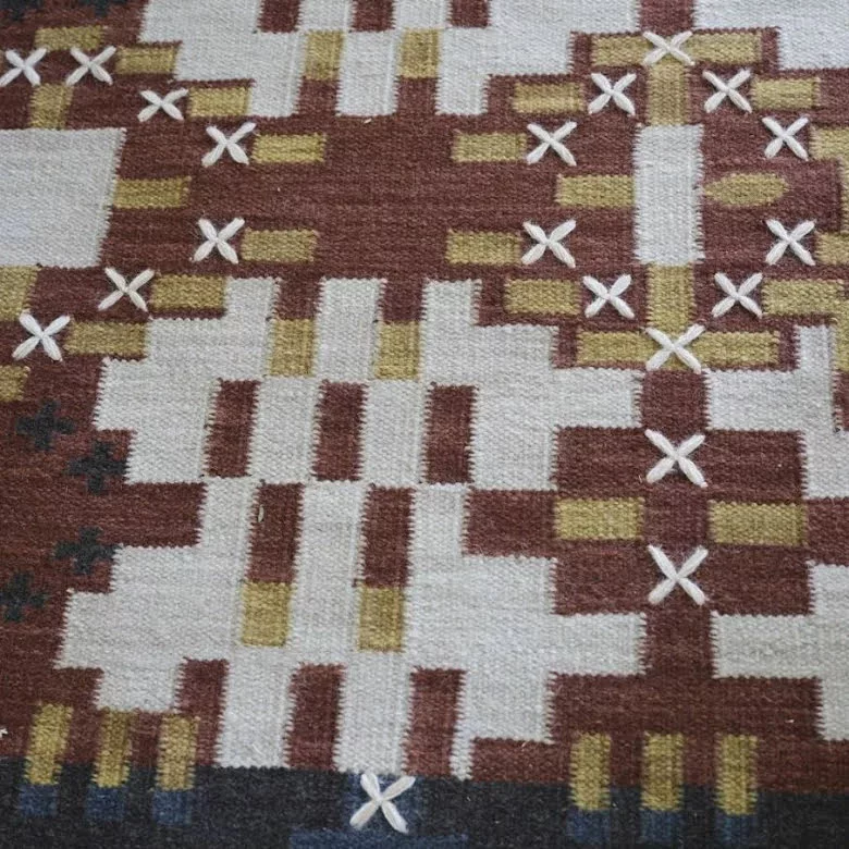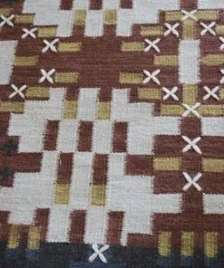 Firle Rosewood Àr en skickligt handvÀvd matta i traditionell vÀvteknik kallad Punja frÄn Designers Guild. Denna matta i dhurrie-stil kombinerar geometriska fÀrgblock i jordnÀra nyanser, framhÀvda med handarbetade korsstygn.
