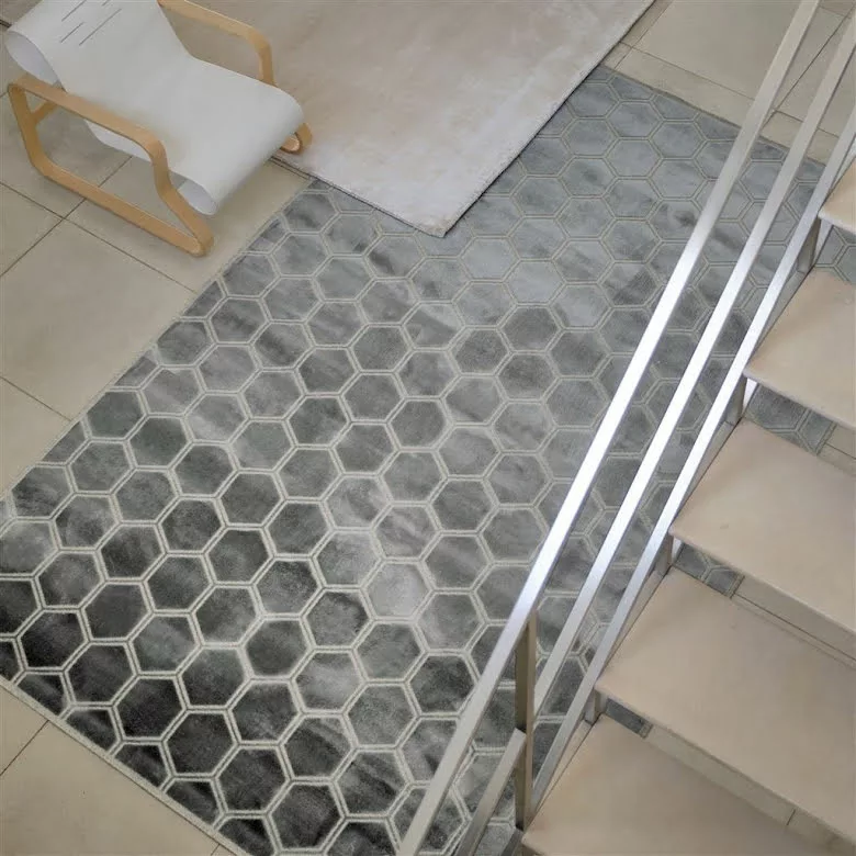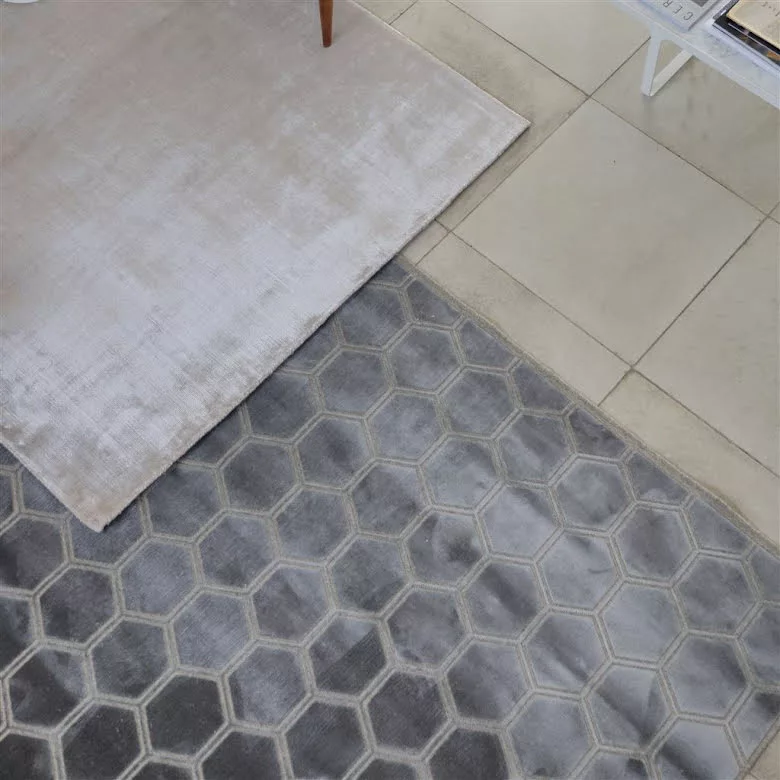 Manipur Silver, vacker matta med hexagonmönster, frÄn Designers Guild.