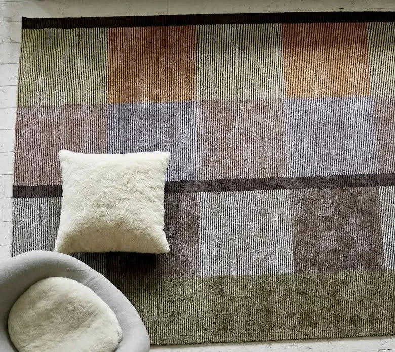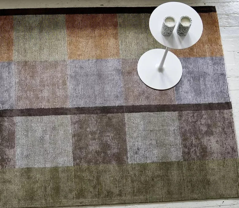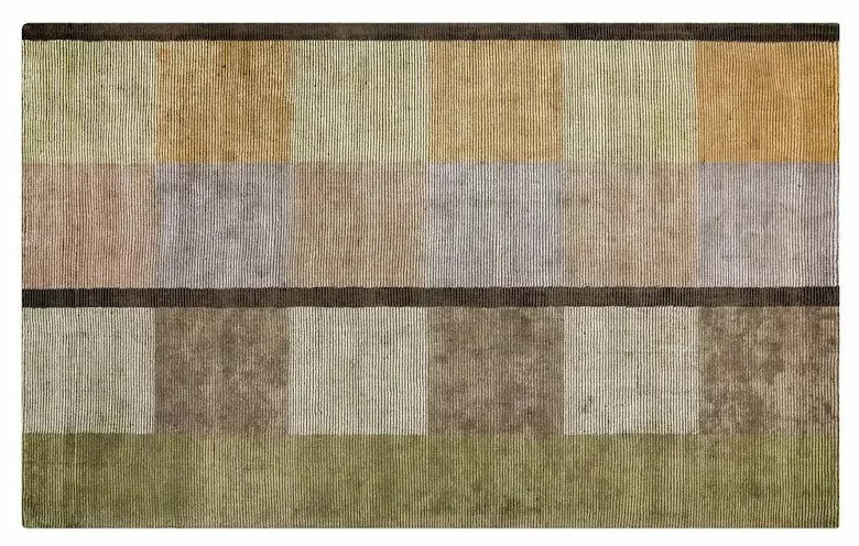 Sarang Ochre Àr en handtuftad matta frÄn Designers Guild i fina, alternerande, band av ull och viskos i fÀrgblock med en subtil glans. Denna designmatta har rutor i stor skala i rika varma toner av ockra, rost och oliv som balanseras med en rik chokladrand. Denna snygga golvmatta har en baksida i 100 % bomull.