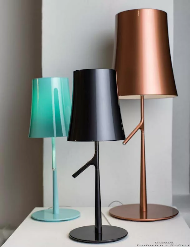 Birdie bordslampa frĂ„n Foscarini finns i tvĂ„ olika storlekar och i olika utföranden. Du kan vĂ€lja mellan on/off strömbrytare eller touch-dimmer.Â