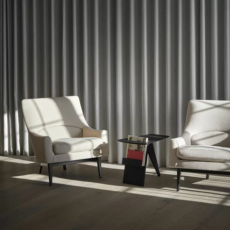 A-chair i metall, formgiven av Jens Risom 1961 och finns nu framtagen av danska Fredericia sedan 2019. Det Àr en skön fÄtölj som Àr gjord för lÀngre sittningar. Finns ocksÄ tillgÀnglig med trÀstomme.