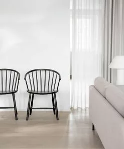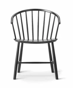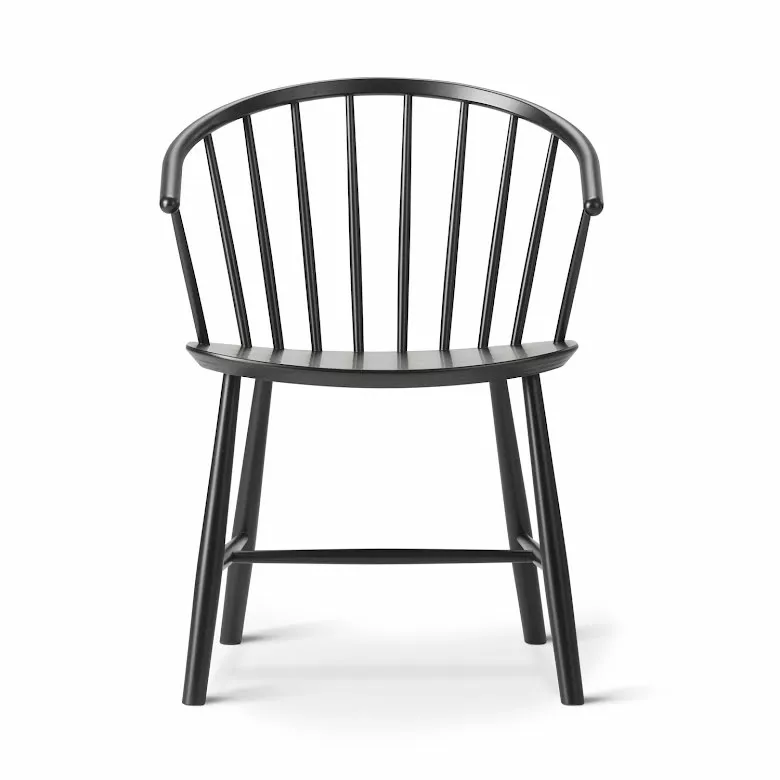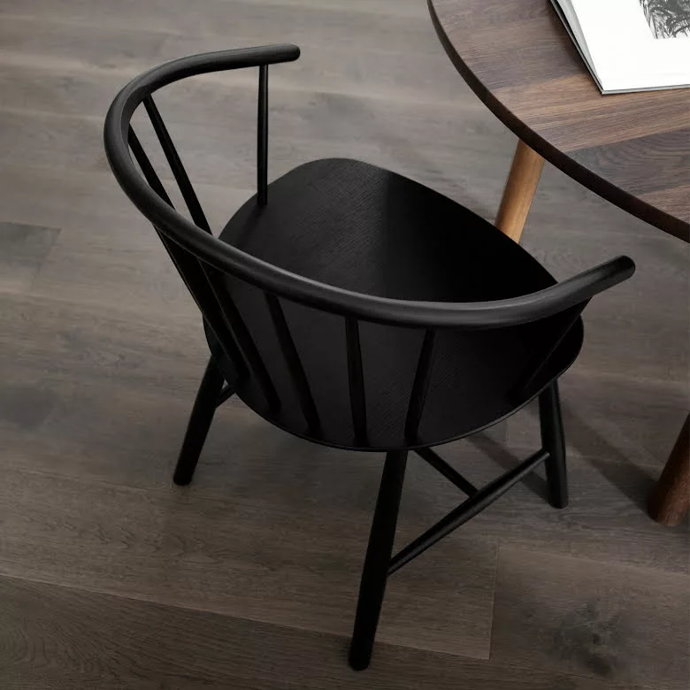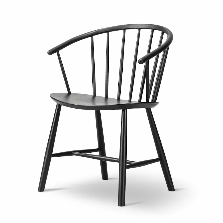 Den omfamnande spindelryggen och mjuka, sluttande armstöden gör J64-stolen till en klassisk men Ă€ndĂ„ visuellt grafisk stol. Sitsens och ryggens kurva ger ergonomisk komfort och möjliggör mĂ„nga sittstĂ€llningar. J64 Ă€r idealisk som en matstol eller som en mindre fĂ„tölj, tillsammans med en kudde eller filt. Ejvind A. Johansson byggde pĂ„ BĂžrge Mogensens ambition att förse danskarnas hem med funktionell modernism.Â