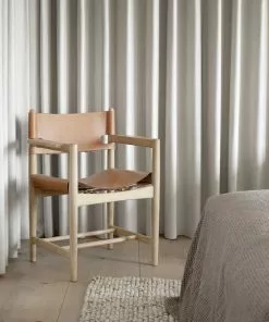Material: Ram av massiv ek. Sits och rygg i garvat sadelskinn med metallspÀnnen. LÀdersÀtet har dukbaksida. Sadelremmarna kan dras Ät nÀr lÀdret expanderar med tiden.