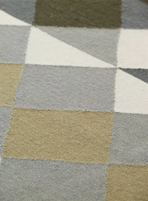 Mosaiek Grå är en modern Kelimmatta från Gan-rugs, handvävd i 100% ull. Gan-rugs från Valencia i Spanien blandar gammalt hantverk med modern, kraftfull design.