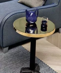 Det lilla bordet Brass 43 Àr designat av prisbelönte formgivaren Paola Navone för italienska Gervasoni. Det finns med skiva i blankpolerad mÀssing alternativt mattborstad aluminium, dÄ heter det Silver 43.