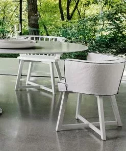 I vår nätbutik säljer vi fåtöljen med klädseln Lino Bianco, en vit förtvättad i materialet bomull/lin.