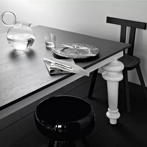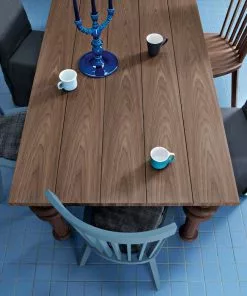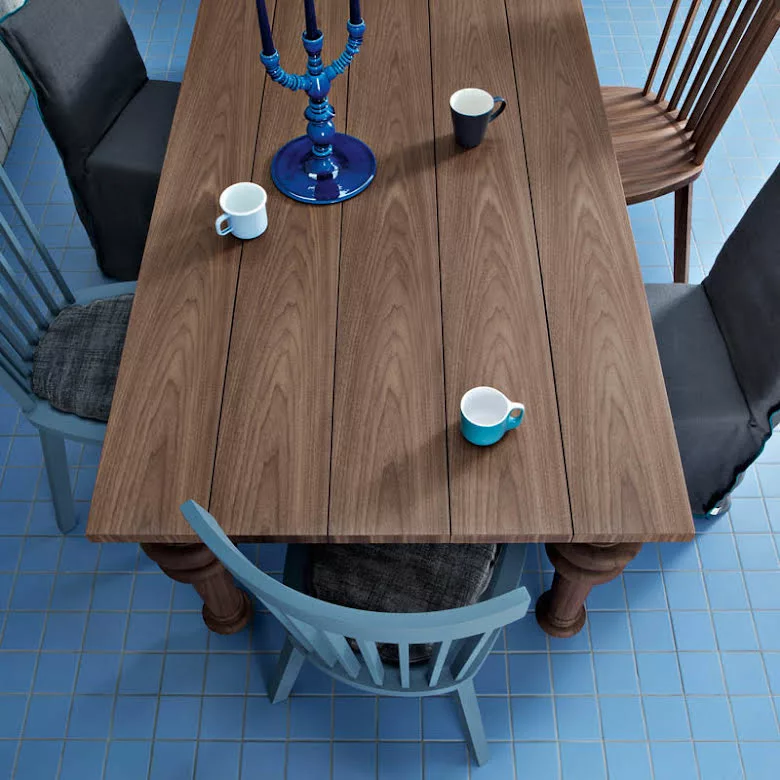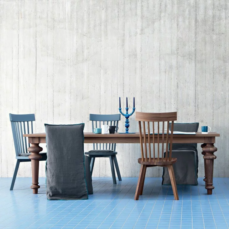 Bordsskivan finns i amerikansk valnöt, klarlackerad ek eller lackerad ek i fÀrgerna vit, grÄ, blÄ och svart, grov skiffer, vit Carraramarmor eller vaxat jÀrnplatta. Underredet finns i amerikansk valnöt, marmor, porslin, ek eller lackerad ek i vit, svart, grÄ eller blÄ.