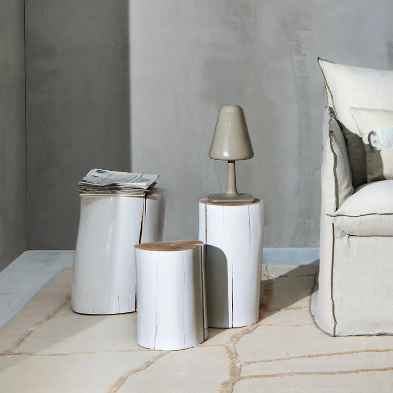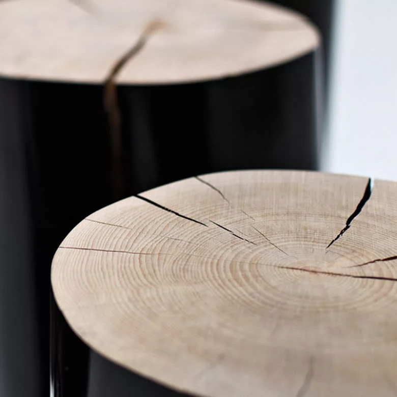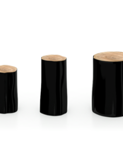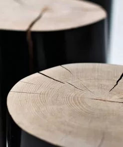 TrĂ€stubbar – avbarkade och lackerade pĂ„ utsidan i svart eller vit högglansig fĂ€rg. Kan anvĂ€ndas som bord, pall eller enbart som utsmyckning. Fin bĂ„de ensam och i grupp. Finns i tre storlekar.