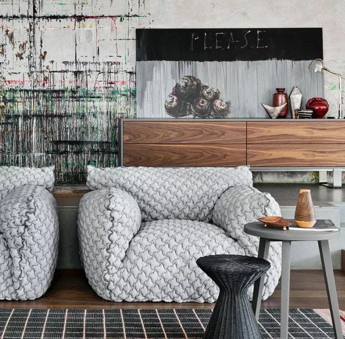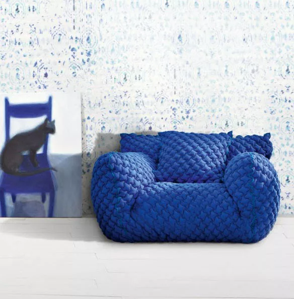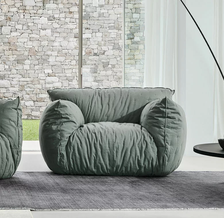 Nuvola 09 är en stor och generös fåtölj/loveseat formgiven av Paola Navone för italienska Gervasoni. Fåtöljen är stoppad med polyuretanskum täckt av gåsdun och polyester fiber quilting, avtagbar klädsel.