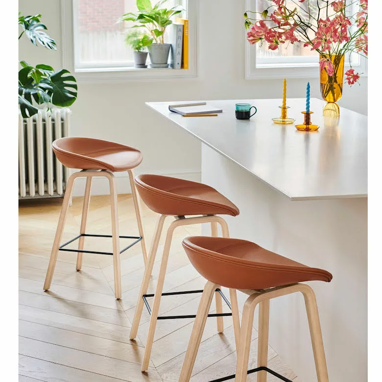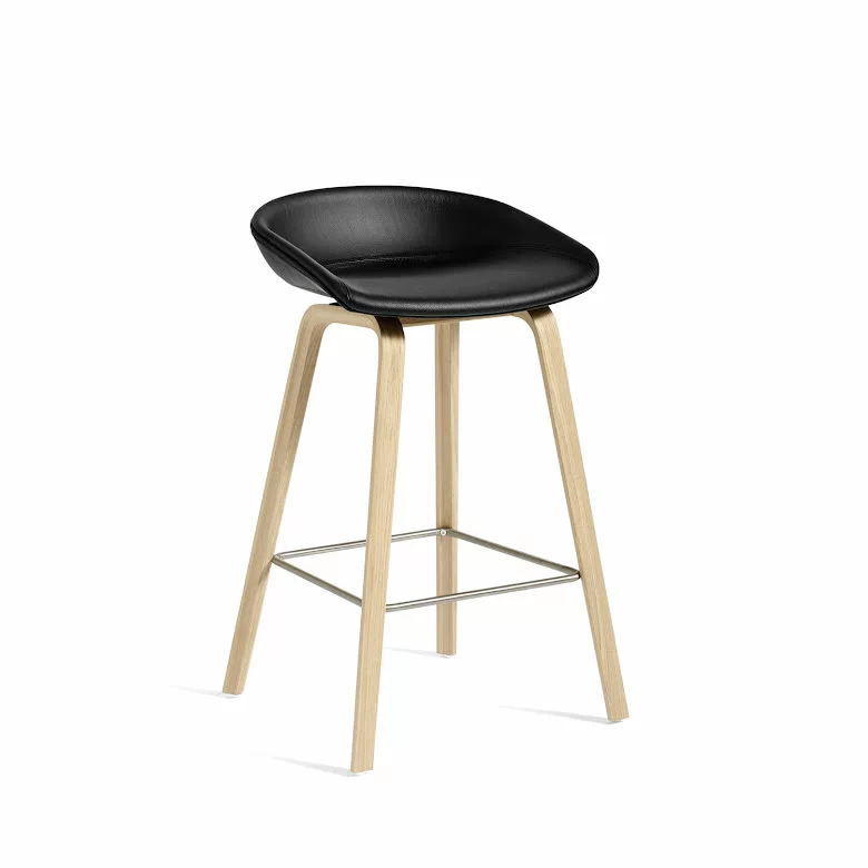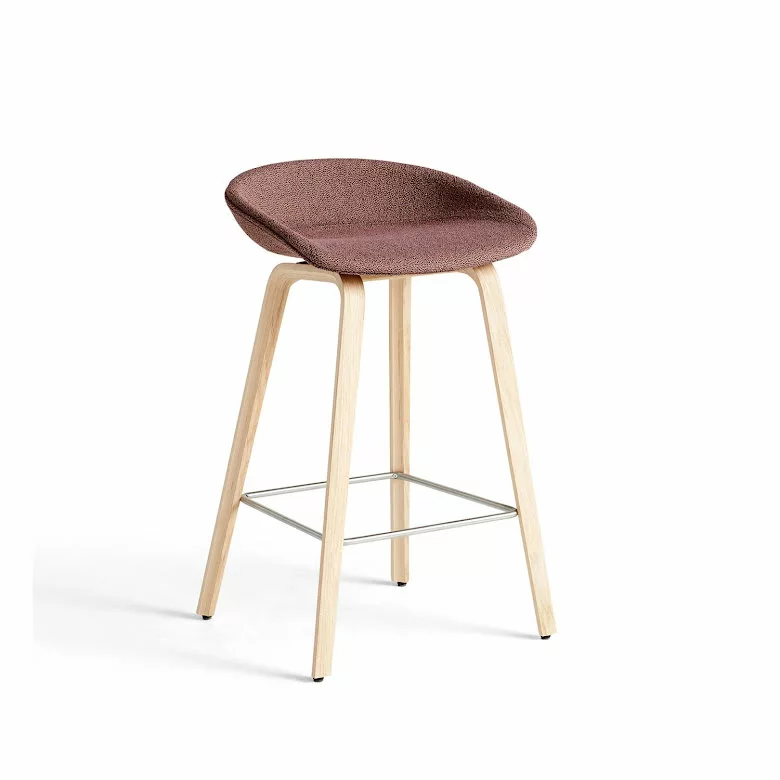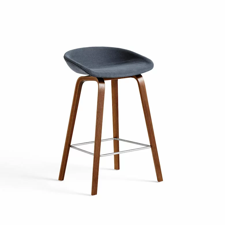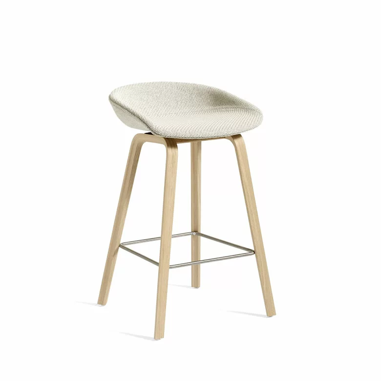 About a Stool frÄn Hay Àr formgiven av Hee Welling. Tanken bakom About a Stool var att skapa en enkel design men ÀndÄ kombinera form, funktion, detalj och estetik. Denna variant av barstolen har klÀdd sits och benstativet gÄr att fÄ i mattlackad ek, svartbetsad ek eller valnöt.