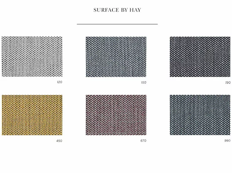 Material: Ram i pulverlackat svart stĂ„l alternativt kromat stĂ„l. KlĂ€dsel: Surface (90% ull, 10% nylon). Tyg runt soffan: canvas svart (100% bomull) eller canvas natur (100% lin).Â