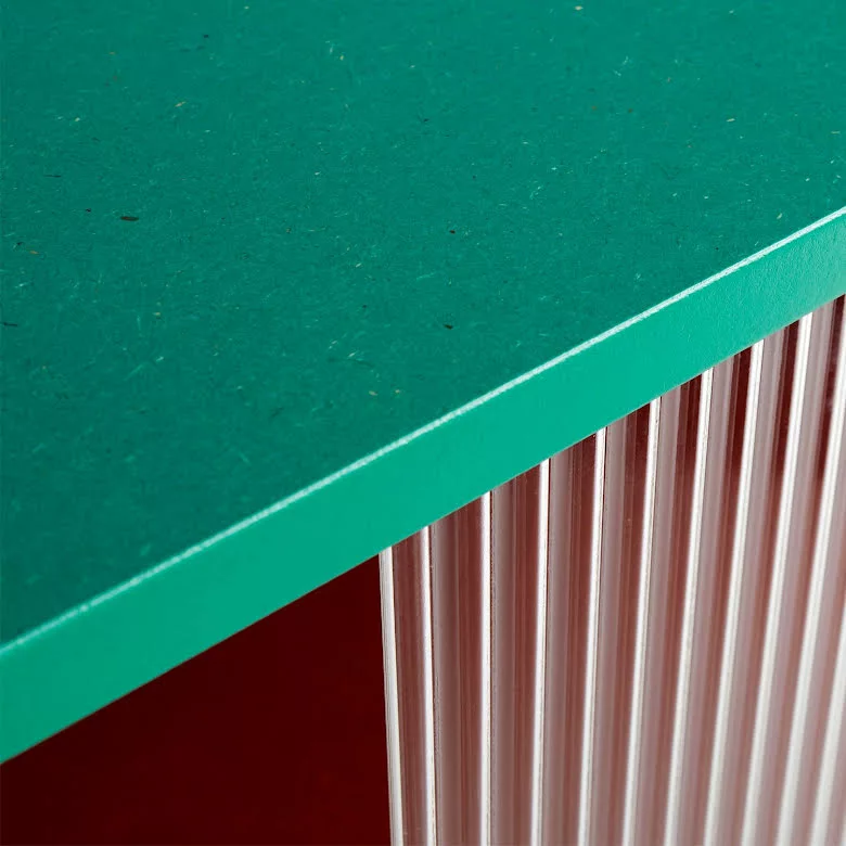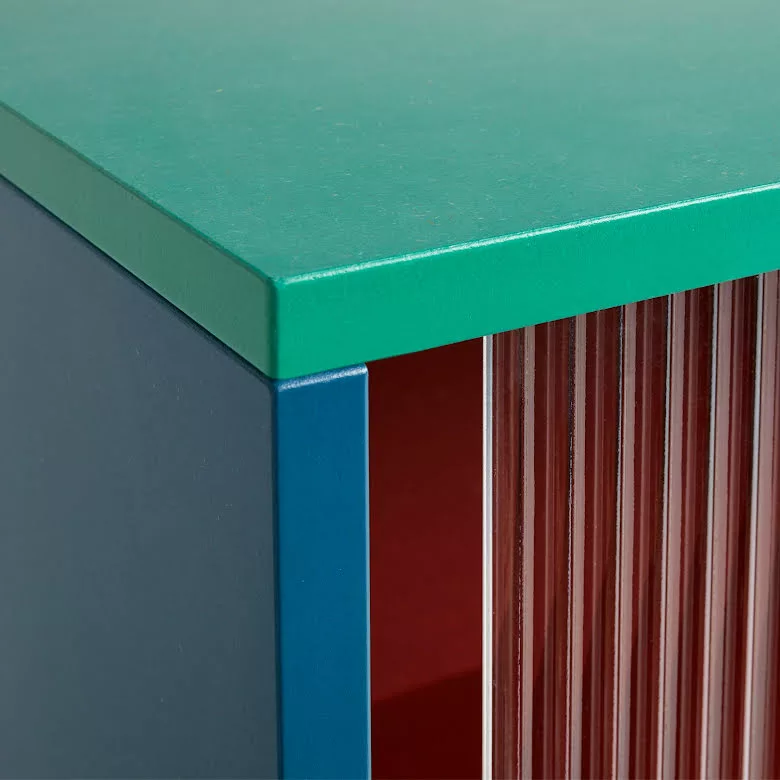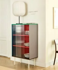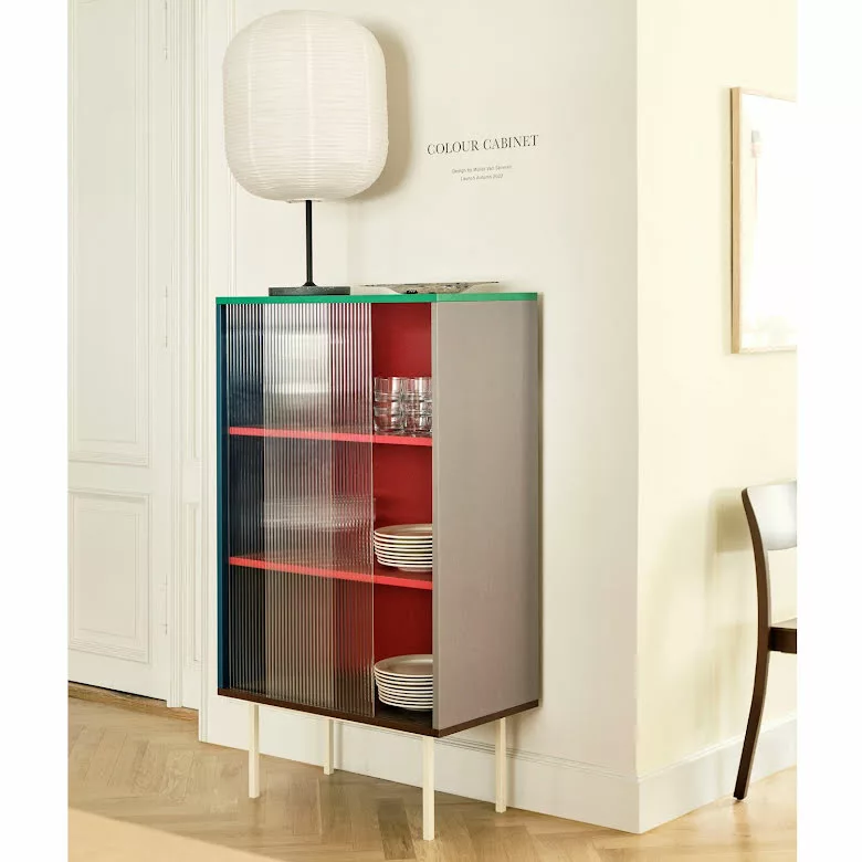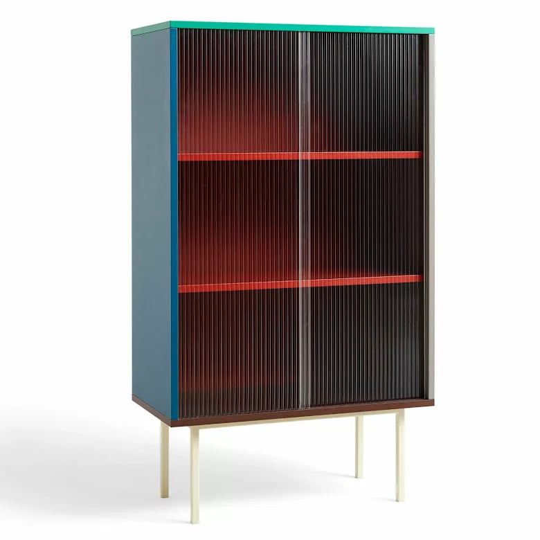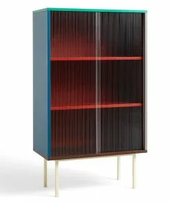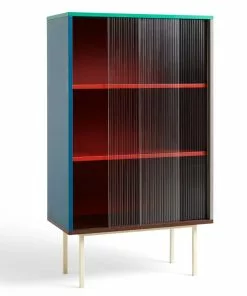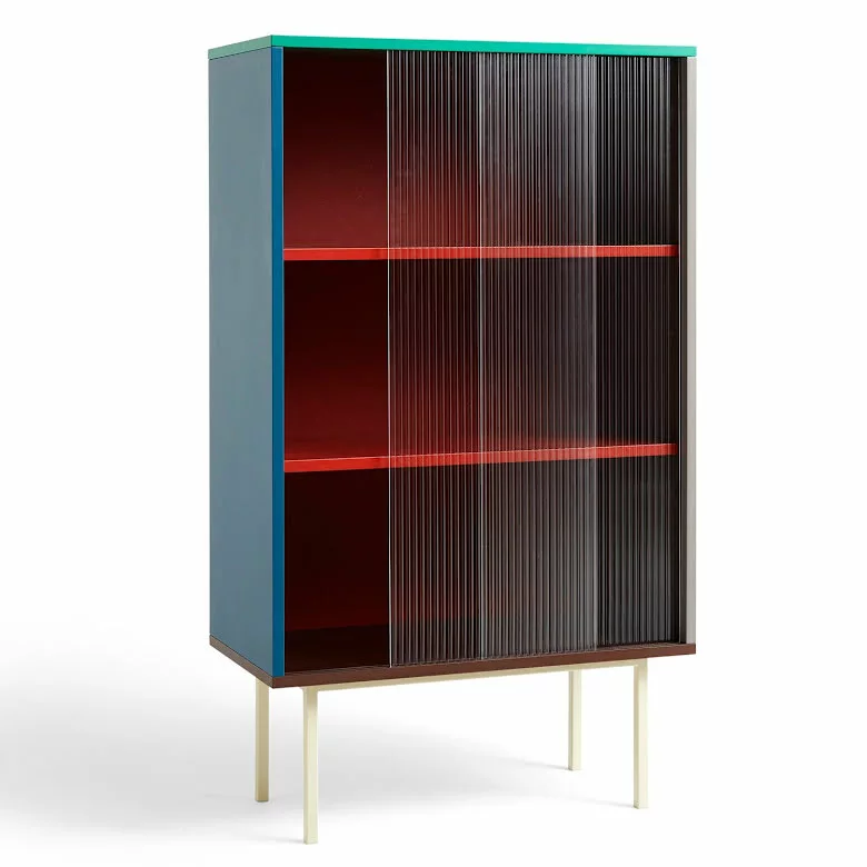 Designad av de belgiska formgivarna Muller Van Severen, Ă€r Colour Cabinet-kollektionen en serie golvstĂ„ende och vĂ€gghĂ€ngande skĂ„p som framhĂ€ver det motsĂ€gelsefulla samspelet mellan ren, minimalistisk design med fĂ€rgens liv och originalitet. SkĂ„pets stomme Ă€r tillverkad i organiskt fĂ€rgad ValchromatÂź â ett unikt slags robust MDF-material som Ă€r FSC-certifierat, med stödramen i slitstarkt stĂ„l. SkĂ„pets skjutdörrar Ă€r tillverkad av rĂ€fflat, hĂ€rdat glas (krĂ€ver montering i skĂ„pet). Colour Cabinet Tall finns i tvĂ„ fĂ€rgstĂ€llningar – multifĂ€rgad eller gul.Â