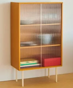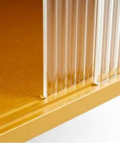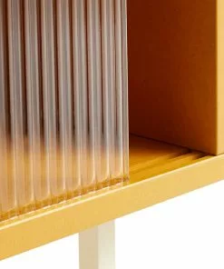 Designad av de belgiska formgivarna Muller Van Severen, Ă€r Colour Cabinet-kollektionen en serie golvstĂ„ende och vĂ€gghĂ€ngande skĂ„p som framhĂ€ver det motsĂ€gelsefulla samspelet mellan ren, minimalistisk design med fĂ€rgens liv och originalitet. SkĂ„pets stomme Ă€r tillverkad i organiskt fĂ€rgad ValchromatÂź â ett unikt slags robust MDF-material som Ă€r FSC-certifierat, med stödramen i slitstarkt stĂ„l. SkĂ„pets skjutdörrar Ă€r tillverkad av rĂ€fflat, hĂ€rdat glas (krĂ€ver montering i skĂ„pet). Colour Cabinet Tall finns i tvĂ„ fĂ€rgstĂ€llningar – multifĂ€rgad eller gul.Â