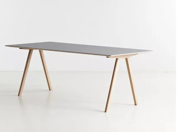 Copenhague bord CPH10 ingÄr i en serie bord och stolar frÄn danska Hay. Bordet passar sÄvÀl som matbord som för arbete. Underrede i sÄpad, lackad eller betsad ek. Toppskiva i sÄpad, lackad eller betsad ek alternativt med linoleumtopp i svart, grÄtt, grönt eller offwhite. CPH10 har nÄgot tunnare benstativ Àn storasyster CPH30.