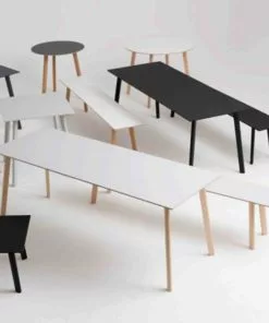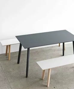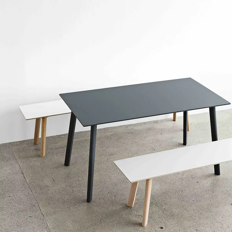 Copenhague Deux Àr en ny serie av bord och bÀnkar för trÄnga utrymmen. Kollektionen erbjuder matbord, soffbord och bÀnkar i 12 olika storlekar. Bordsskivan Àr tillverkad av ett nytt laminat baserat pÄ nanoteknologi vilket ger en mycket matt yta med en mjuk kÀnsla som Àr anti-fingeravryck behandlat och gör det lÀtt att rengöra. PÄ den hÀr sidan hittar ni deras rekangulÀra och kvadratiska matbord.