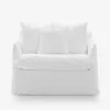 Mags soft sofa är en modulsoffa med ett stort antal olika kombinationsmöjligheter. I produktbladet kan du se de olika varianterna. Du kan välja mellan högt eller lågt armstöd. Det finns ett mycket stort antal olika tyger att välja bland, varav i nätbutiken har ett litet fåtal. Välkommen till butiken och titta på prover och provsitt soffan. Dekorativa zigzag-sömmar går att få i i svart, vitt, ljusgrått eller mörkgrått. På bilden är soffan i tyget Linara 142 med beige kontrastsöm för ett enhetligt intryck.