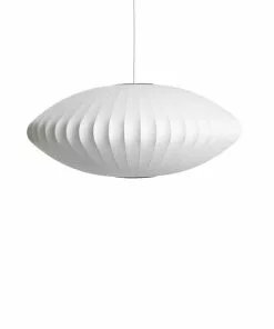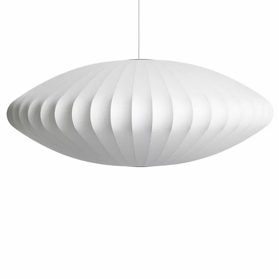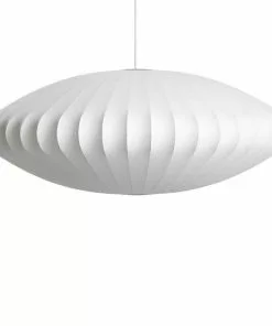 Nelson Saucer Bubble Pendant Àr formgiven av amerikanska designern George Nelson 1947. Lampan producerades första gÄngen 1952 och distribueras frÄn och med 2019 av HAY för att hedra samarbetet med Herman Miller. Nelsons bubble lamp finns i flera olika former och storlekar.