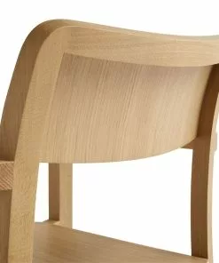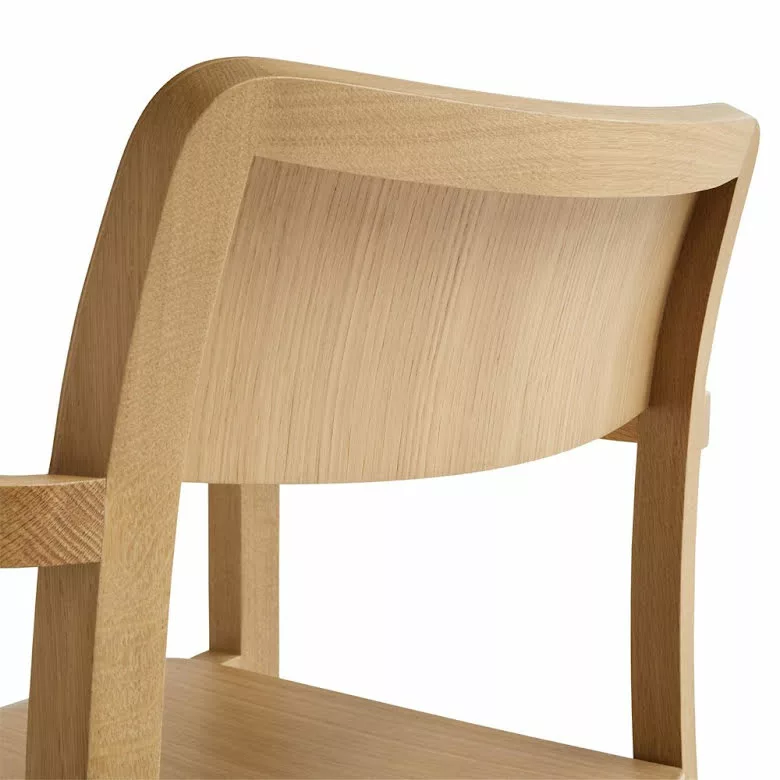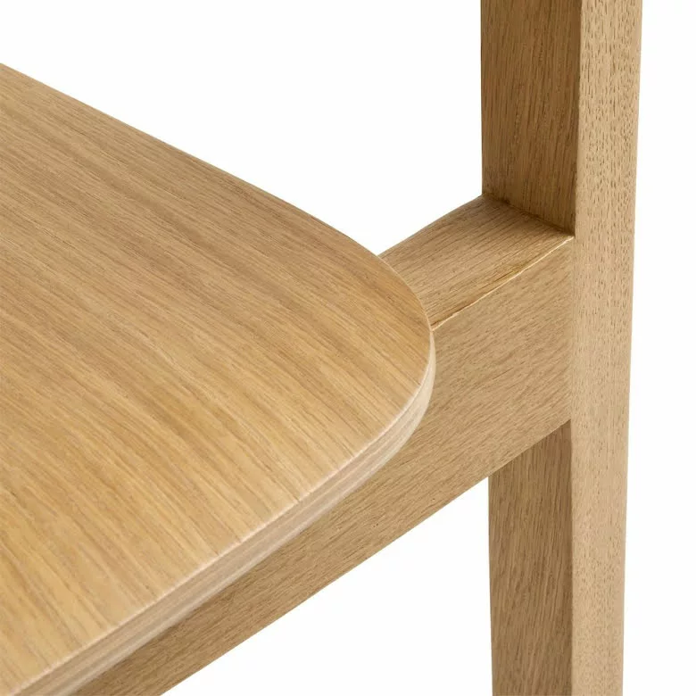 Material: Sits och rygg i lackad formpressad plywood. Toppfanér i ek, ask eller valnöt. Stomme av massivt trÀ med sits och ryggstöd i formpressad plywood. Förmonterad