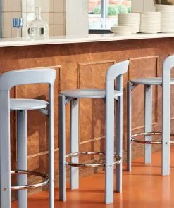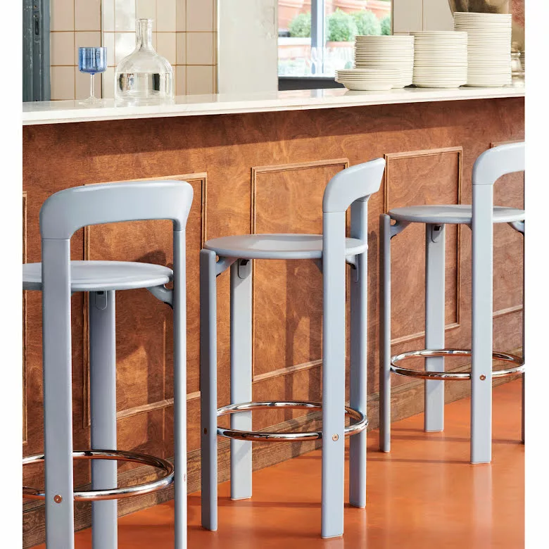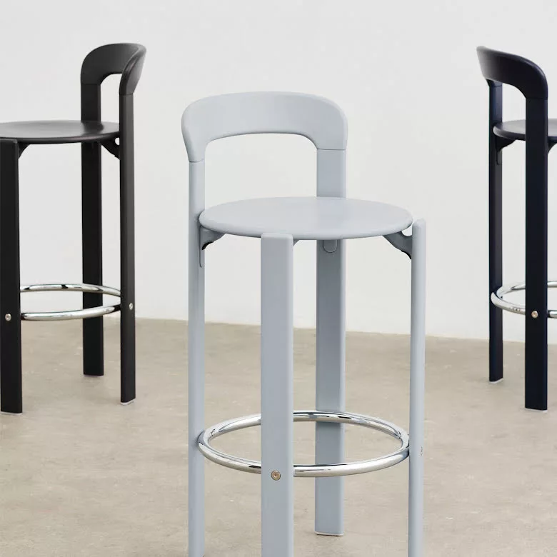 Baserad pÄ originalkollektionen designad av den Schweiziska designern Bruno Rey frÄn 1971, relanserar nu HAY tillsammans med Dietiker den ikoniska Rey-kollektionen Med sina distinkta rundade kanter och kurvade rygg var det den första stolen att fÄ patent med Dietikers unika, skruvlösa produktionsprocess och har blivit en av de mest framgÄngsrika Schweiziska stolarna nÄgonsin. Stolen har blivit modifierad med nya dimensioner och materialkombinationer för att passa en modern livsstil. Rey Bar Stool gÄr att bestÀlla i 5 olika fÀrger och Àr tillverkad i vattenbaserad lackad bok.
