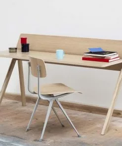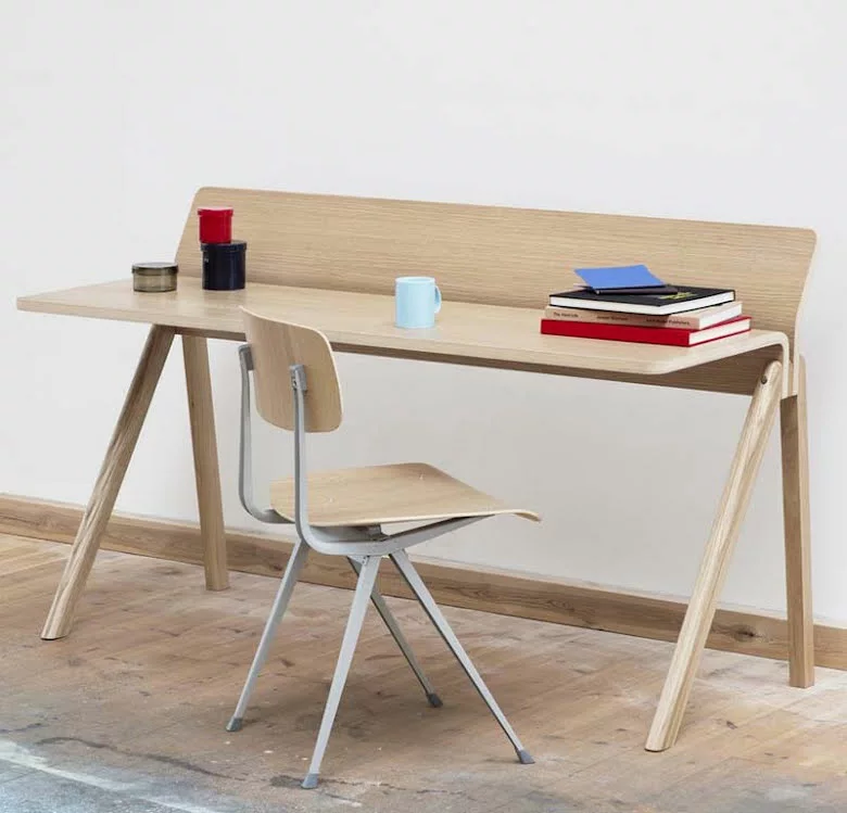Copenhague skrivbord CPH190 av Ronan & erwan Bouroullec för danska Hay. Skrivbordets skiva Ă€r delat i tvĂ„ delar varav den ena har lyfts upp för att bilda ett stöd för anteckningar och böcker. En rolig funktion som ger skrivbordet ett distinkt och intressant uttryck.Â