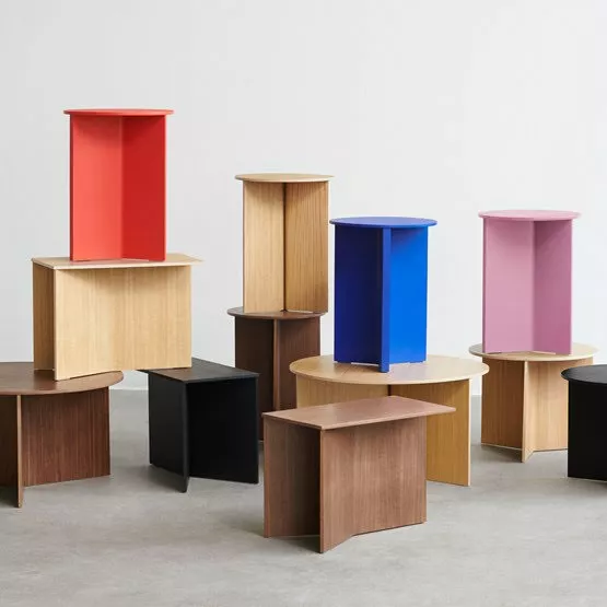 Ett stilrent bord i trä där bordets benställning är gjord likt ett vikt ark och skapar en slits, likt den japanska origamin översatt till möbeldesign. Bordet finns i flera färger och storlekar. Placera bordet ensamt, eller bygg ihop en större yta av borden i familjen och skapa en dynamisk ö av soffbord.