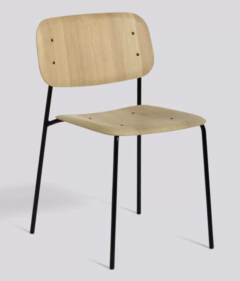 Soft Edge har sits och rygg av formpressad plywood och fanĂ©r och ett stativ i svartlackat stĂ„l eller massiv ek. Stolen har en mjuk form dĂ€r alla kanter vetter bort frĂ„n kroppen. Den Ă€r stapelbar, lĂ€tt och passar lika bra i hemmet som i offentlig miljö.Â