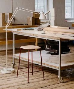 Material: Sits av plywood med ekfanér i olika färger och ben av stål i färgerna svart, röd och grå. Obs om röda ben önskas går sitsen att få i mattlackad ek eller fall red och om grå ben önskas går sitsen att få i grå eller matttlackad ek.