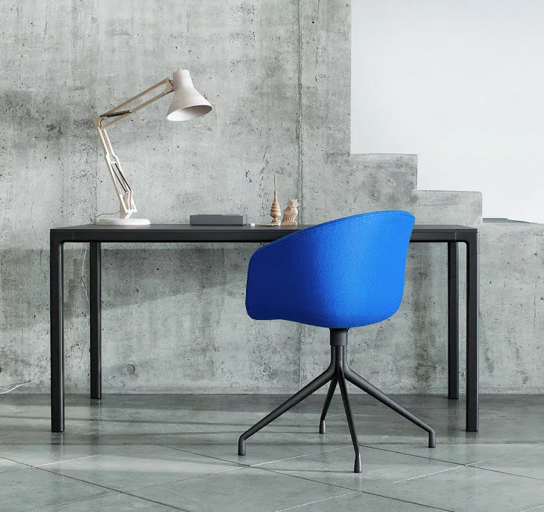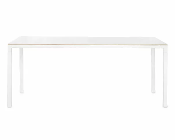 T12 matbord frĂ„n HAY har en modern, stram design. Benens rundade kanterna tillför mjukhet och vĂ€rme. Bordet finns i en stor mĂ€ngd storlekar i svart eller vitt. Bordskanten pĂ„ det vita bordet Ă€r i naturbrun plywood.Â