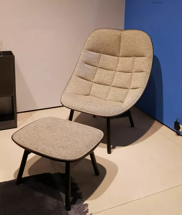 Uchiwa lounge chair i design av Doshi Levien för Hay. Uchiwa Ă€r en rymlig fĂ„tölj med en mjuk och öppen form inspirerad av den traditionella japanska handflĂ€kten. En generös och inbjudande fĂ„tölj med ett hĂ„rdare skal och en förvĂ„nansvĂ€rt mjuk stoppning inuti. Benen kommer i naturlig ek, svartbetsad ek eller grĂ„betsad ek. DĂ„ kombinationsmöjligheterna Ă€r nĂ€stan oĂ€ndliga sĂ„ föreslĂ„r vi att du kommer in till oss pĂ„ Birger Jarlsgatan 32 för att titta pĂ„ tyger och provsitta Uchiwa.Â