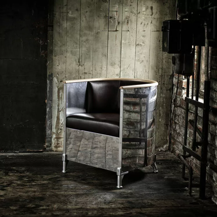 Fåtöljen Aluminium av Mats Theselius för Källemo. Fåtöljen finns i borstad eller polerad aluminium med sits och rygg i tärnsjöläder Armstöd i bok natur, valnöt eller svart.