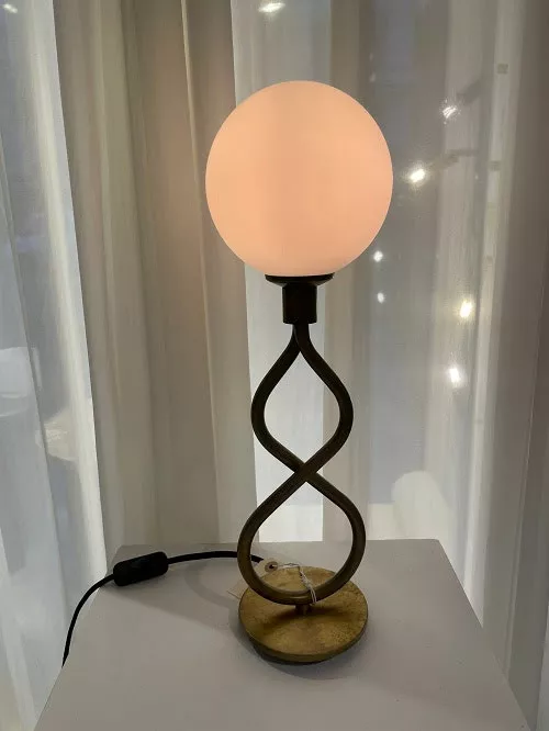 Eldklot Ă€r en elegant, svensktillverkad bordslampa frĂ„n Konsthantverk, formgiven av Lisa Hilland. Lampan fĂ„r uppmĂ€rksamhet i rummet med sina vackra kurvor i glĂ€nsande rĂ„mĂ€ssing och med ett matvitt lysande klot överst. Lampan sprider ett behagligt stĂ€mningsljus pĂ„ fönsterbrĂ€dan eller pĂ„ sidobordet.Â