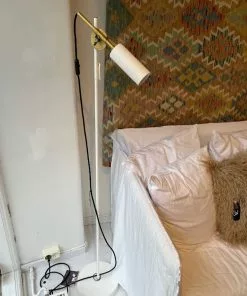 Stav golvlampa Ă€r tlllverkad i matt vit stĂ„l och rĂ„ mĂ€ssing. LjuskĂ€llan Ă€r justerbar med en vingmutter och gĂ„r att stĂ€lla in pĂ„ önskad höjd efter behov.Â