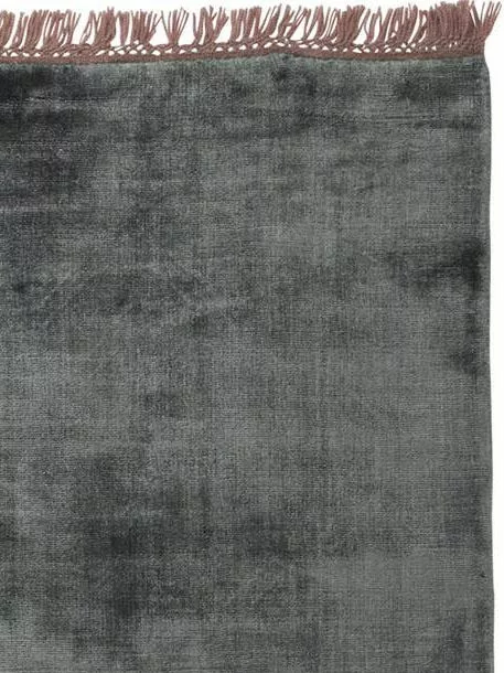 Almeria frÄn danska Linie Design Àr en handvÀvd konstsilkematta. Den har en frans och finns i fem hÀrliga naturnÀra fÀrgtoner. Almeria midnight har en frans i rosalila.