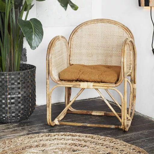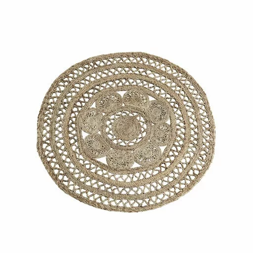 En handflätad rund matta gjord utav naturmaterialet jute och tillerkad av danska Madam Stoltz. Perfekt att ha i sommarstugan, barnrummet eller lite var som.