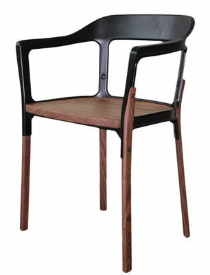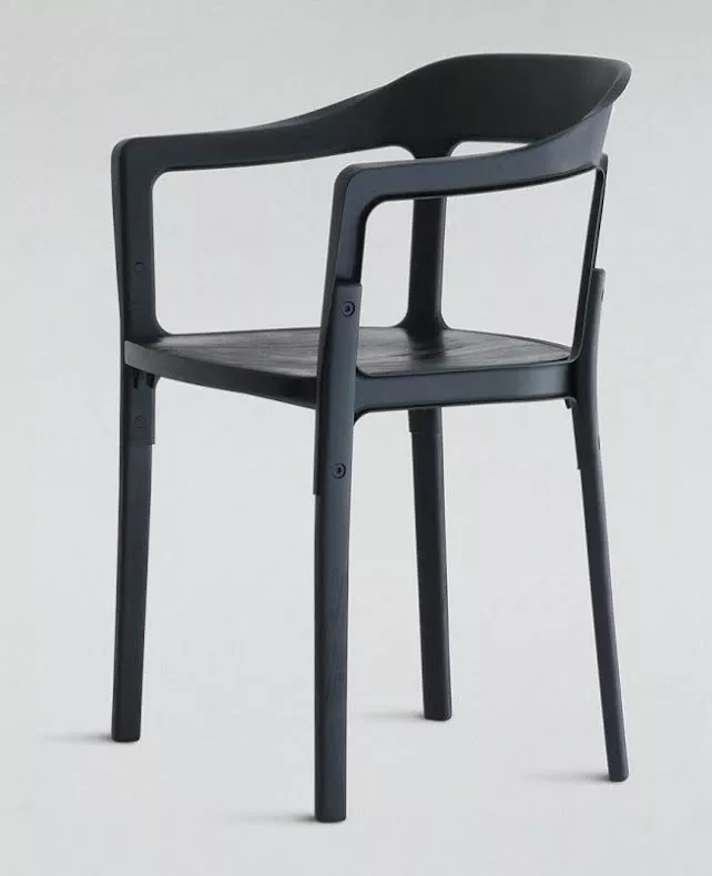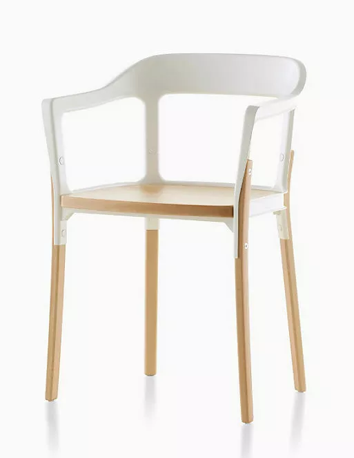 En stol med ben i bok och rygg och ram i metall designad av Ronan & Erwan Bouroullec för Magis 2008.
